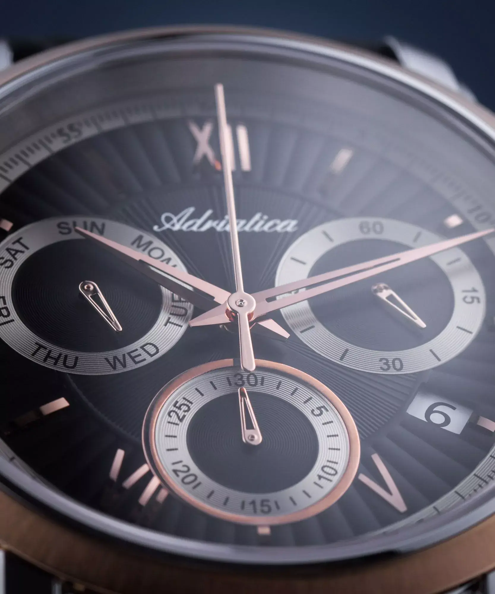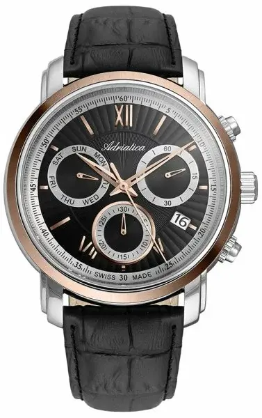 Adriatica Classic A8193.R266CH – одни из лучших часов этого бренда. Эти мужские часы — воплощение элегантности и изысканного стиля, поэтому они, несомненно, удовлетворят потребности каждого мужчины. Кварцевый механизм отвечает за точность хода времени. Корпус стального серого цвета имеет внутри механизм. Часы поставляются на черном кожаном ремешке. Это не только улучшает комфорт, но и внешний вид всех часов. Легко читаемый циферблат покрыт сапфировым стеклом, устойчивым даже к самым большим царапинам. Водонепроницаемость часов 50 метров означает, что они устойчивы к брызгам.