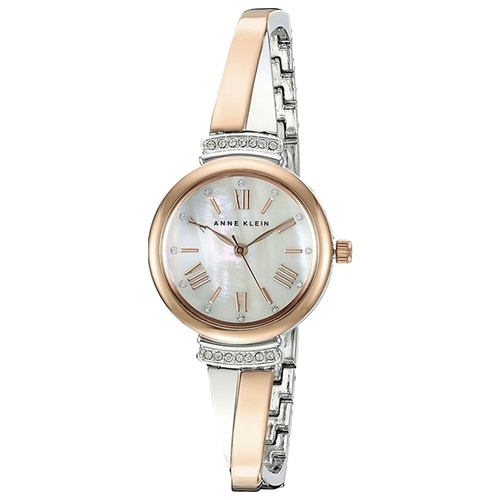Кварцевые часы. 12 часовой формат времени. Корпус, циферблат и браслет украшены кристаллами Swarovski. Корпус и браслет из нержавеющей стали с частичным PVD покрытием цвета розового золота. Минеральное стекло. Диаметр 26 мм. В комплекте два браслета.