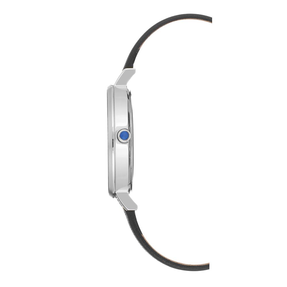 Популярная модель часов от Anne Klein с черным кожанным ремешком из телячьей кожи. Секундная стрелка вынесена на отдельный циферблат.