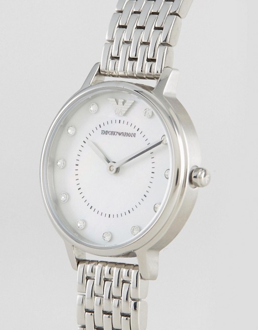 Кварцевые часы. Корпус и браслет из нержавеющей стали. Перламутровый циферблат с метками в виде кристаллов. Диаметр 28 мм.