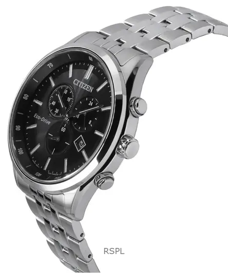 Кварцевый хронограф. Система Eco-Drive не требующая замены батарейки. Питание от солнечной энергии. Время работы без подзарядки до 5 месяцев. Защита от перезаряда. Индикатор низкого заряда батареи. Водостойкость WR 100 (плавание без погружения). Часы, минуты, секунды. Индикация даты. Хронограф. Тахиметр. Стрелки и метки с люминесцентным покрытием. Циферблат с часовыми индексами в виде штрихов. Корпус выполнен из нержавеющей стали. Диаметр корпуса 42 мм, толщина 11 мм. Устойчивое к возникновению мелких механических повреждений сапфировое стекло. Браслет выполнен из нержавеющей стали. Раскладывающаяся застежка.