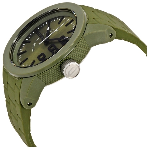 Корпус из нержавеющей стали с покрытием цвета хаки и зеленым силиконовым ремешком. Фиксированный безель. Циферблат ссерыми стрелками и указателями. Минутные маркеры вокруг внешнего обода. Тип : аналоговый. Кварцевый механизм. Устойчивое к царапинам минеральное стекло. Размер корпуса: 44 мм. Толщина корпуса: 13 мм. Круглая форма корпуса. Ширина полосы: 24 мм. Водонепроницаемость на 50 метров / 165 футов. Функции: час, минута, секунда. Повседневный стиль часов.