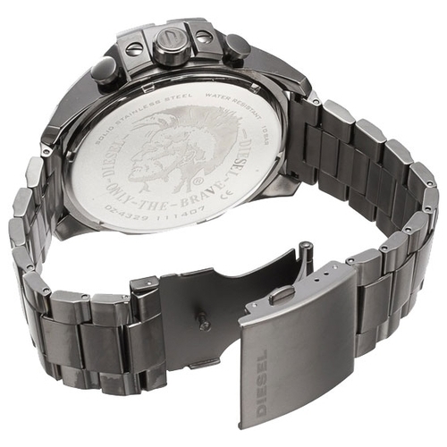 Кварцевые часы с хронографом. Малые циферблаты на 60 секунд, 60 минут и доли секунд. Секундомер с точностью измерения 1/10 секунды. Корпус и браслет выполнены из полированной матовой нержавеющей стали с PVD покрытием темно-серого металлического цвета. Синий циферблат с центральной секундной стрелкой. Люминесцентные метки и стрелки. Индикация даты в позиции трех часов. Минеральное стекло высокой прочности устойчиво к мелким механическим повреждениям. Диаметр 51 мм, толщина 12 мм. Точность хода -10 +15 сек./в месяц. Водонепроницаемость WR 100.
