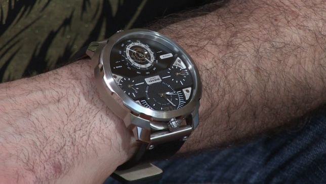 Корпус из нержавеющей стали с черным кожаным ремешком. Фиксированный безель из нержавеющей стали. Черный циферблат с четырьмя часовыми поясами с серебристыми стрелками и часовыми метками в виде арабских цифр. Тип: аналоговый. День недели и отображение даты. Кварцевый механизм. Устойчивое к царапинам минеральное стекло. Размеры корпуса: 51 мм х 55 мм. Толщина корпуса: 14 мм. Круглая форма корпуса. Ширина браслета: 26 мм. Танг застежка. Водонепроницаемость на 50 метров / 165 футов. Функции: час, минута, секунда, 4 часовых пояса. Спортивные часы в стиле Diesel Timeframe Black Dial. 4 Часовые пояса мужские часы DZ7379.
