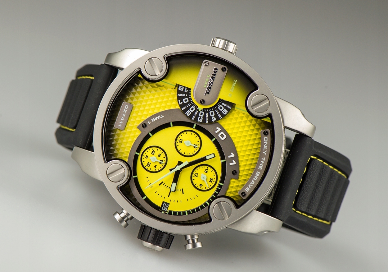 Мужской кварцевый хронограф. Часы, минуты, секунды. Индикация даты. Второй часовой пояс. Корпус выполнен из нержавеющей стали. Размеры корпуса 52х62х13 мм. Силиконовый ремешок. Минеральное стекло. Водостойкость WR 30.