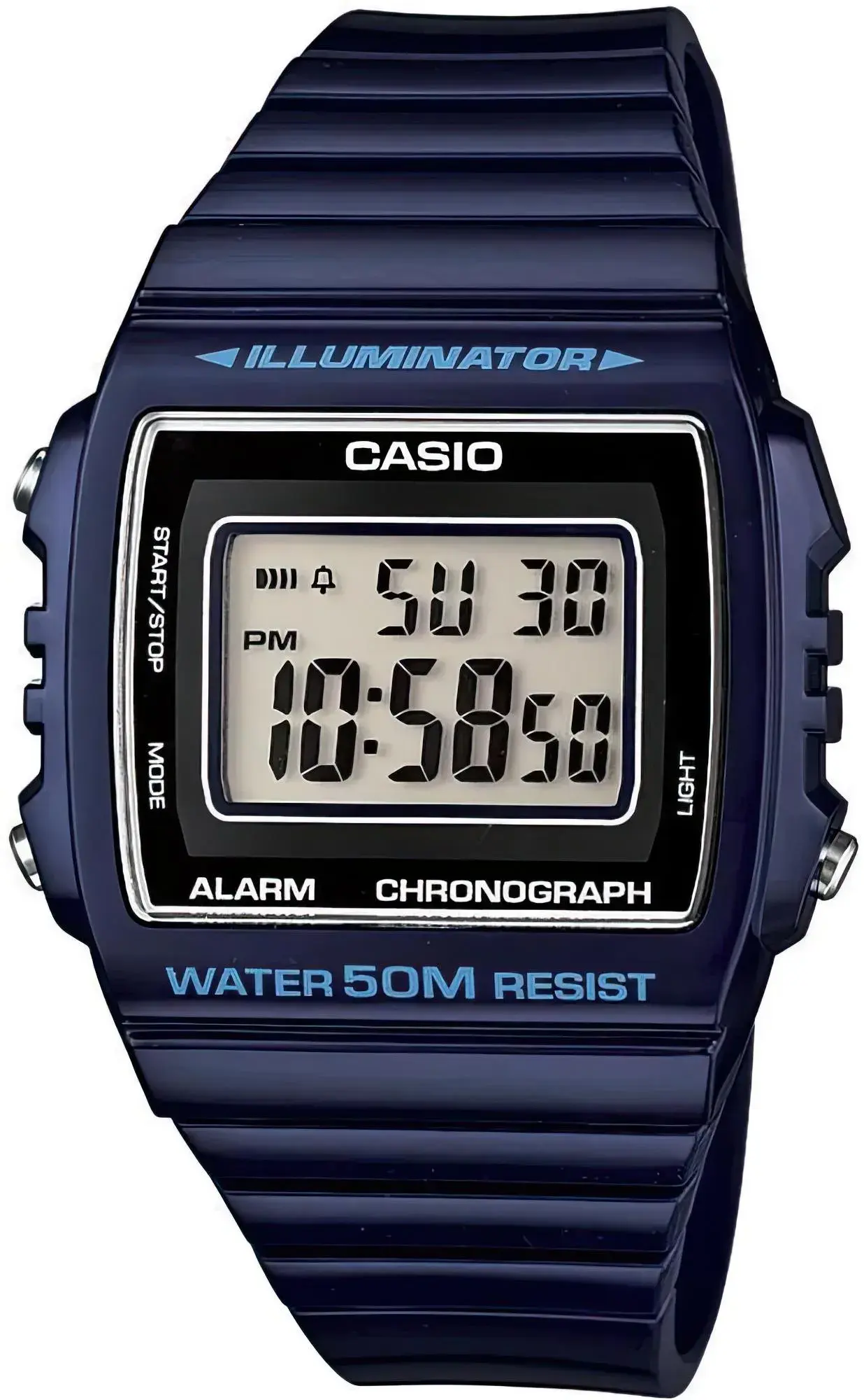 Электронные кварцевые наручные часы Casio W-215H-2A с цифровой индикацией времени. Калибр механизма — 3224. Функциональность данной модели: формат времени 12/24, автоматический календарь до 2099 года, будильник, сигнал начала часа, секундомер с точностью 1/100 секунды и измерением до 59 минут 59,99 cек., диодная подсветка циферблата. Водонепроницаемость WR50 (5 атм). Размеры корпуса: (ШxВxТ) 40.7x43.8x10.9 мм