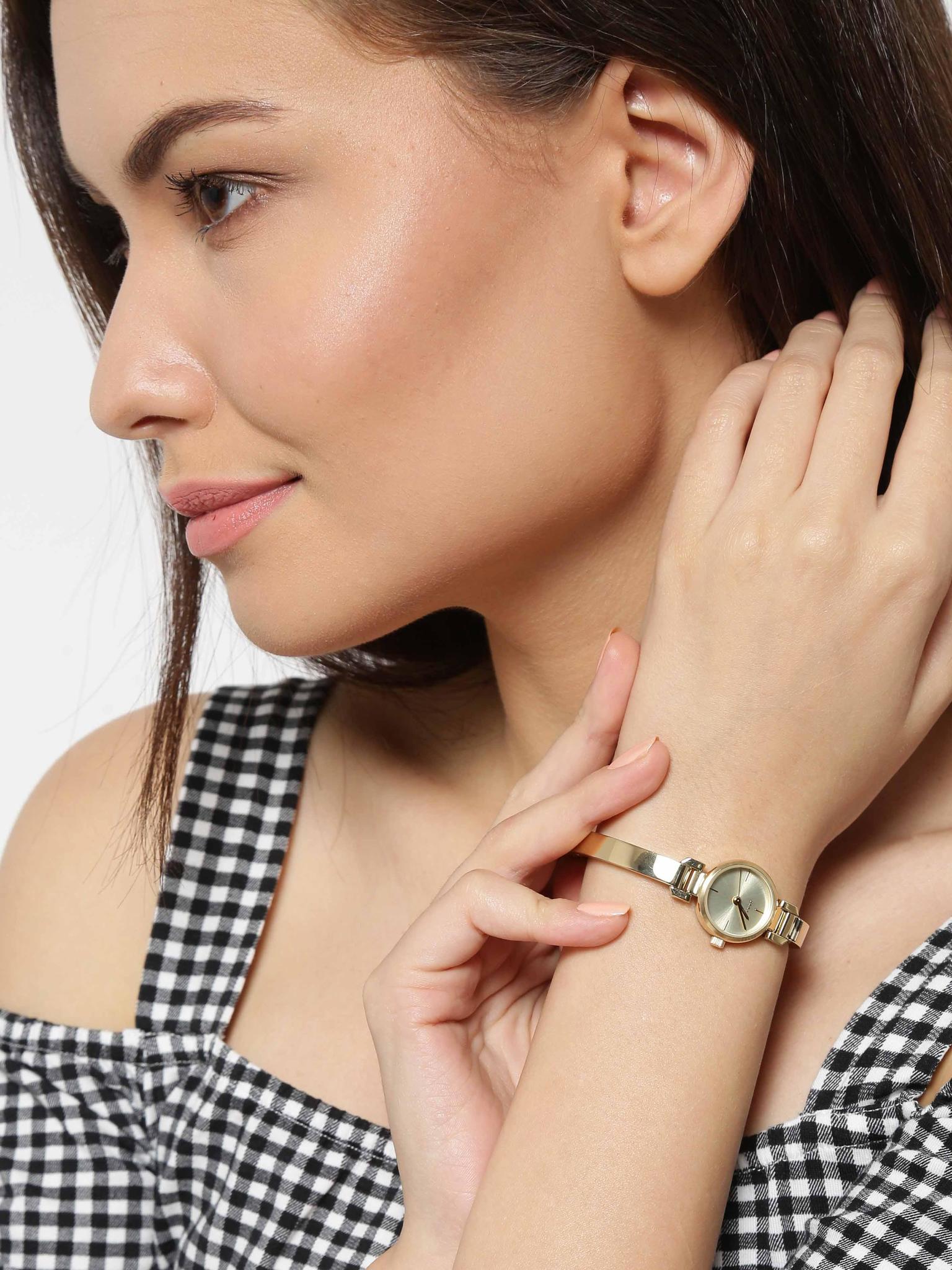 Часы из нержавеющей стали с золотым оттенком DKNY Ellington сочетают в себе полированный круглый корпус с тонким, полированным браслетом, который выглядит так же, как и часы. Золотистый циферблат заканчивает минималистский вид.