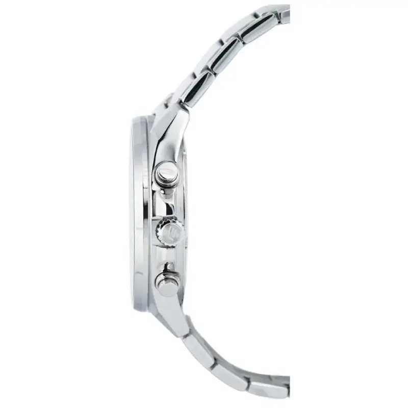 Элегантный хронограф со спортивным духом оценит любой мужчина, живущий активной жизнью. Edifice. Часы-хронограф с секундомером. Секундомер с точностью 1с и временем измерения 1ч. 12-ти и 24-х часовой формат времени. Циферблат с метками в виде штрихов выполнен по технологии Sunray (солнечные лучи). Окошко даты находится между метками 4 и 5 часов. Заводная головка с защитой. Задняя крышка с винтовым фиксатором. Браслет с тройной раскладывающейся застежкой, расстегиваемой одним касанием.