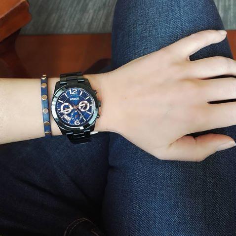 Кварцевые часы. Корпус и браслет шириной 20 мм выполнены из нержавеющей стали с PVD покрытием синего цвета. Три малых циферблата, показывающих день недели и два часовых пояса с 24-х часовым форматом времени. Центральная секундная стрелка. Часовая и минутная стрелки и индексы покрыты люминесцентным покрытием. Индикация даты.