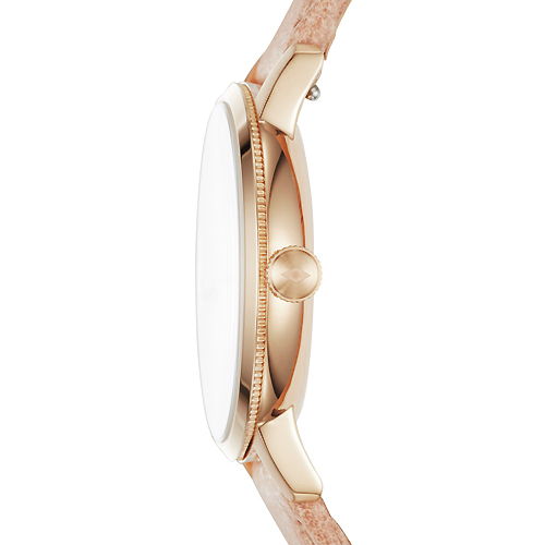 Кварцевые часы. Корпус выполнен из нержавеющей стали с IP покрытием. Центральная секундная стрелка. Бежевый кожаный ремешок шириной 16 мм.