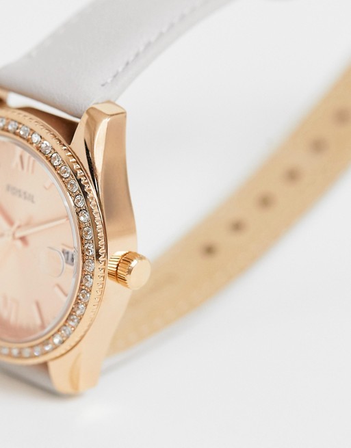 Кварцевые часы. Корпус выполнен из нержавеющей стали с IP покрытием под цвет розового золота и украшен кристаллами. Розово-золотистый циферблат с центральной секундной стрелкой и индикацией даты в позиции 3-х часов. Позолоченные стрелки и метки. Прочное минеральное стекло устойчивое к мелким механическим повреждениям. Белый ремешок шириной 16 мм из натуральной кожи с классической пряжкой из нержавеющей стали с IPRG покрытием. Водостойкость WR 50.
