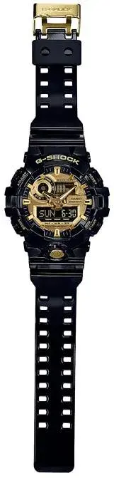 Противоударные кварцевые мужские наручные часы Casio GA-710GB-1A коллекции G-Shock цифровой+стрелочной индикацией времени. Калибр механизма — 5522. Функциональность данной модели: формат времени 12/24, автоматический календарь до 2099 года, функция летнего времени (DST), мировое время 48 городов (31 часовой пояс), 5 независимых будильников, сигнал начала часа, секундомер с точностью 1/100 секунды и измерением до 23 часов 59 минут 59,99 cек., таймер обратного отсчета (диапазон времени 60 минут), диодная подсветка циферблата, функция выключения звука кнопок (Mute). Функция сдвига стрелок в нейтральное положение для удобства обзора цифровой индикации. Водонепроницаемость WR200 (20 атм). Размеры корпуса: (ШхВхТ) ~57.5x53.4x18.4 мм
