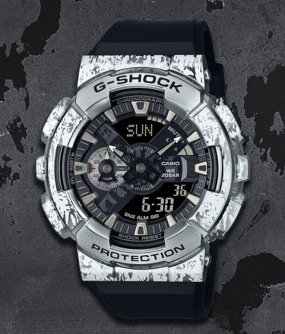 Стильная модель часов из серии G-SHOCK как всегда выполнена в лучших традициях японского качества. G-Shock. Узор на корпусе, напоминающий облупившийся металл, вдохновлен культурой гранж-роком, которая была популярная в 90-х годах. Противоударный корпус защищает механизм от ударов и вибрации. Защищены от магнитных полей. Циферблат подсвечивается светодиодом. Настраиваемое послесвечение 1,5 или 3сек. Цвет подсветки: белый. Необритовое светонакопительное покрытие обеспечивает длительное послесвечение в темноте даже после кратковременного нахождения на свету. 12-ти и 24-х часовой формат времени. Секундомер с точностью показаний 1/100с и временем измерения 1000ч. SPLIT-хронограф. Таймер обратного отсчета от 1мин до 24ч. Мировое время – 48 городов (31 часовой пояс), всемирное координированное время (UTC). Функция включения/отключения летнего времени. Переключение между домашним и мировым временем. Функция отключения/включения звука. Водонепроницаемость 20 Бар в соответствии с ISO 2281. Задняя крышка крепится на 4-х винтах. Ремешок с классической застежкой и системой быстрой замены.