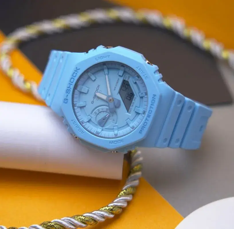 Новая цветовая гамма противоударных часов создана для парней, которые не только живут спортом, но и следят за последними тенденциями моды. G-Shock Tone-on-Tone. Мужские часы со структурой Carbon Core Guard. Противоударный пластиковый корпус с карбоновыми волокнами более прочный и, в то же время, более легкий. Этот же материал защищает внутренний модуль от повреждений и деформаций при ударах. Двойная подcветка: циферблат и ЖК-дисплеи подсвечиваются светодиодом, благодаря наличию функции задержки, после отпускания кнопки освещение горит еще несколько секунд. Настраиваемое послесвечение 1,5 или 3сек. Цвет подсветки: белый. 12-ти и 24-х часовой формат времени. Секундомер с двумя точностями показаний: 1/100с (до 1ч) и 1с (после 1ч) и временем измерения 24ч. SPLIT-хронограф. Таймер обратного отсчета от 1с до 24ч. Мировое время – 48 городов (31 часовой пояс), всемирное координированное время (UTC). Функция включения/отключения летнего времени. Ретроградный указатель для недели. Функции отключения/включения звука и перемещения стрелок для беспрепятственного просмотра информации на цифровых дисплеях. Стальная задняя крышка крепится на 4-х винтах. Батарейка рассчитана на 3 года. Ремешок из полимерного материала с классической застежкой и системой быстрой замены.