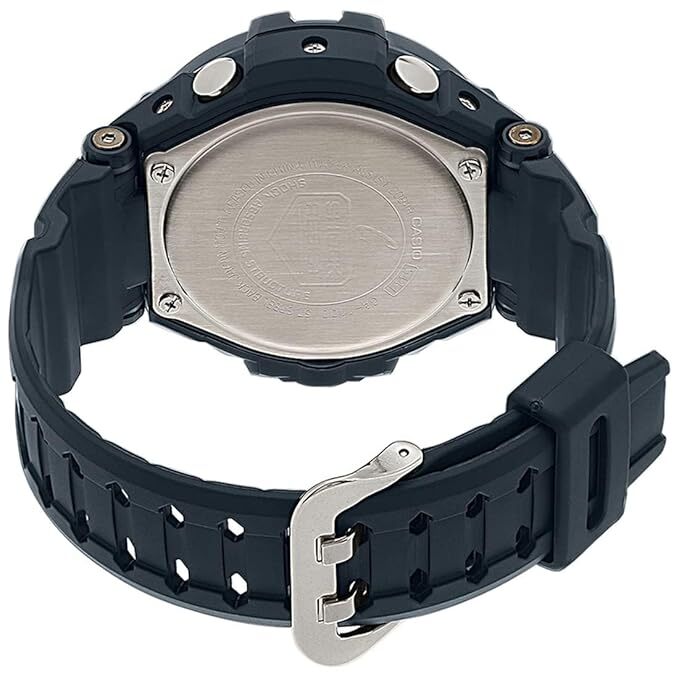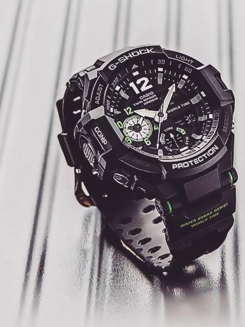 Новые массивные часы G-Shock с компасом, датчиком температуры и яркой светодиодной подсветкой. Aviation Gravitymaster. Противоударный корпус защищает механизм от ударов и вибрации. Светодиодная автоматическая супер-подсветка. При движении руки дисплей освещается ярким светом. Светонакопительное покрытие необрит продолжает светиться в темноте даже после непродолжительного пребывания на свету. Встроенный цифровой компас. Диапазон измерения от 0° до 359° с точностью 1°. Коррекция магнитного склонения. Встроенный датчик температуры от -10° до +60°С с точностью 0,1°C. Мировое время – 48 городов (31 часовой пояс), всемирное координированное время (UTC). Функция включения/отключения летнего времени. 12-ти и 24-х часовой формат времени. Секундомер с точностью показаний 1/100с и временем измерения 1ч. Сплит-хронограф. Таймер обратного отсчета от 1мин до 1ч. Функция перемещения стрелок. Функция включения/отключения звука. Стальной безель.