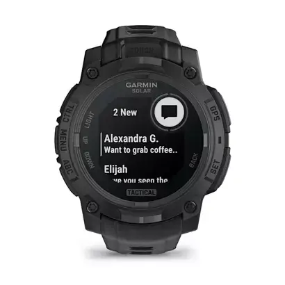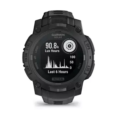 Для тех, кто ищет еще более длительное время автономной работы во время своих приключений на открытом воздухе, серия Instinct 3 – Tactical Edition предлагает варианты с монохромным, высококонтрастным, трансфлективным MIP-дисплеем с линзой, заряжаемой от солнечной энергии, для неограниченного времени автономной работы в режиме смарт-часов1.