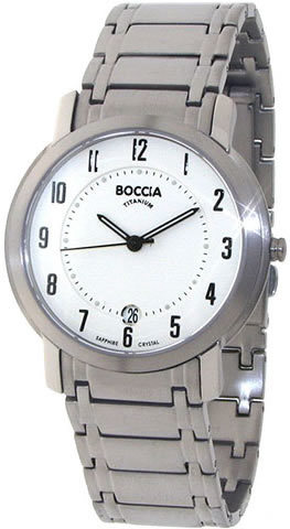 Мужские часы из коллекции Boccia Superslim. Корпус часов и браслет выполнены из беспримесного титана благодаря чему, являются очень легкими, прочными и обладают гипоаллергенными свойствами. Точный японский кварцевый механизм. Сапфировое стекло. Круглый, белый циферблат, диаметр корпуса 39 мм. Есть окошко даты. Водонепроницаемость 50м.