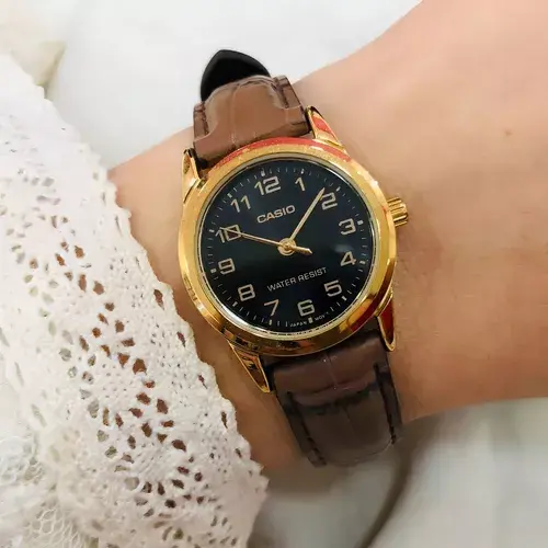 Лаконичное содержание этих часов не оставит равнодушными тех, кто идет в ногу со временем. Standard. Ультратонкие часы с круглым корпусом. Циферблат с метками в виде арабских цифр. Батарейка рассчитана на 3 года. Ремешок с классической застежкой. Имеется мужской вариант модели MTP-V001GL-1B.