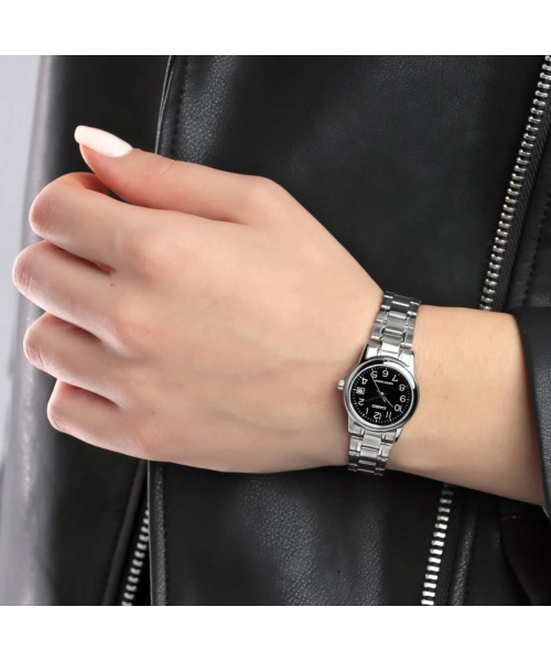 Круглый корпус, хорошо читаемый циферблат и практичный браслет делают эти часы очень удобными. Standard. Женские часы с круглым корпусом. Циферблат с метками в виде арабских цифр выполнен по технологии Sunray (солнечные лучи). Окошко даты находится в положении 3 часа. Браслет с тройной раскладывающейся застежкой.