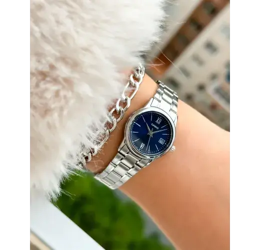 Круглый корпус, хорошо читаемый циферблат и практичный браслет делают эти часы очень удобными. Standard. Женские часы с круглым корпусом. Циферблат с метками в виде штрихов выполнен по технологии Sunray (солнечные лучи). Окошко даты находится в положении 3 часа. Браслет с тройной раскладывающейся застежкой.