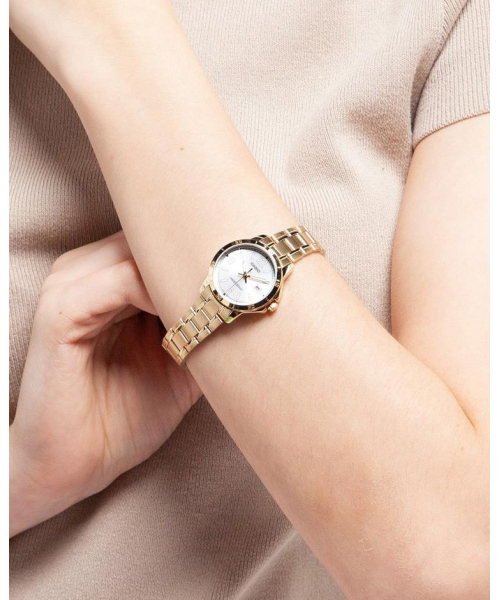 Лаконичное содержание этих часов не оставит равнодушными тех, кто идет в ногу со временем. Standard. Женские часы с круглым корпусом. Циферблат с метками в виде штрихов и арабских цифр. Окошко даты находится в положении 3 часа. Заводная головка с защитой. Браслет с тройной раскладывающейся застежкой.