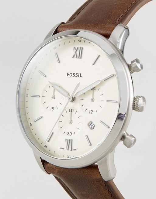 Кварцевый хронограф. Водостойкость WR 50. Часы, минуты, секунды, секундомер, дата, 12/24х часовой формат времени. Люминесцентные стрелки. Корпус выполнен из нержавеющей стали. Диаметр корпуса 44 мм, толщина 12 мм. Минеральное стекло. Кожаный ремешок.