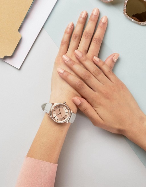 Кварцевые часы. Водостойкость WR 50. Часы, минуты, секунды. Корпус выполнен из нержавеющей стали с IP покрытием. Диаметр корпуса 36 мм, толщина 9 мм. Минеральное стекло. Корпус украшен кристаллами. Кожаный ремешок.