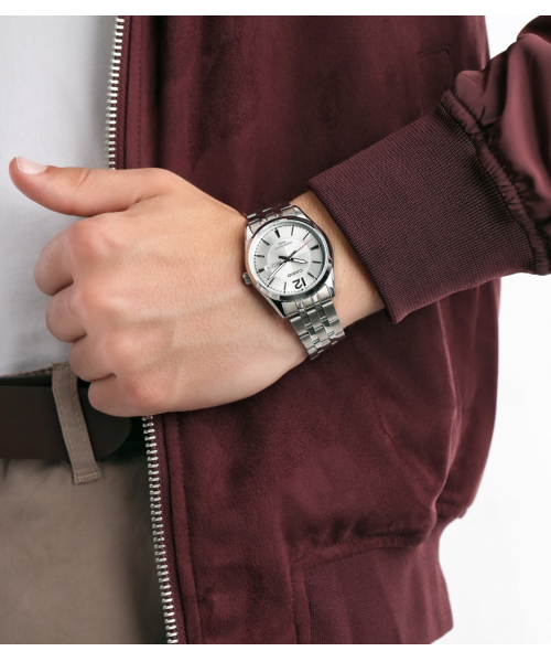 Это мужские часы из коллекции Collection Men. Водозащита до 50 метров позволит принимать душ или умываться, не снимая часов. Надежное минеральное стекло защищает часы от царапин и долго сохраняет первоначальный внешний вид. Минеральное стекло более устойчиво к появлению небольших царапин и потертостей, хорошо может выдержать небольшие удары и падения. Даже если поцарапаете стекло, его легко можно отполировать в часовой мастерской и вернуть им прежний вид. Корпус часов изготовлен из стали, механизм — кварц. Кварцевые часы всегда точнее механических. В среднем, погрешность хода составляет 20 секунд в месяц. Кварцевые часы не нужно заводить, только менять батарейку раз в несколько лет.