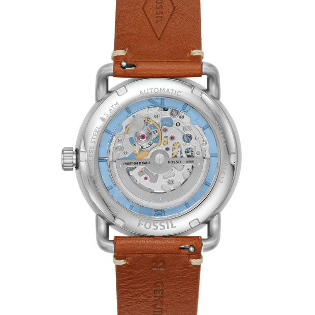 Механические часы с автоподзаводом. Скелетон. Корпус выполнен из нержавеющей стали. Центральная секундная стрелка. Кожаный ремешок шириной 22 мм.