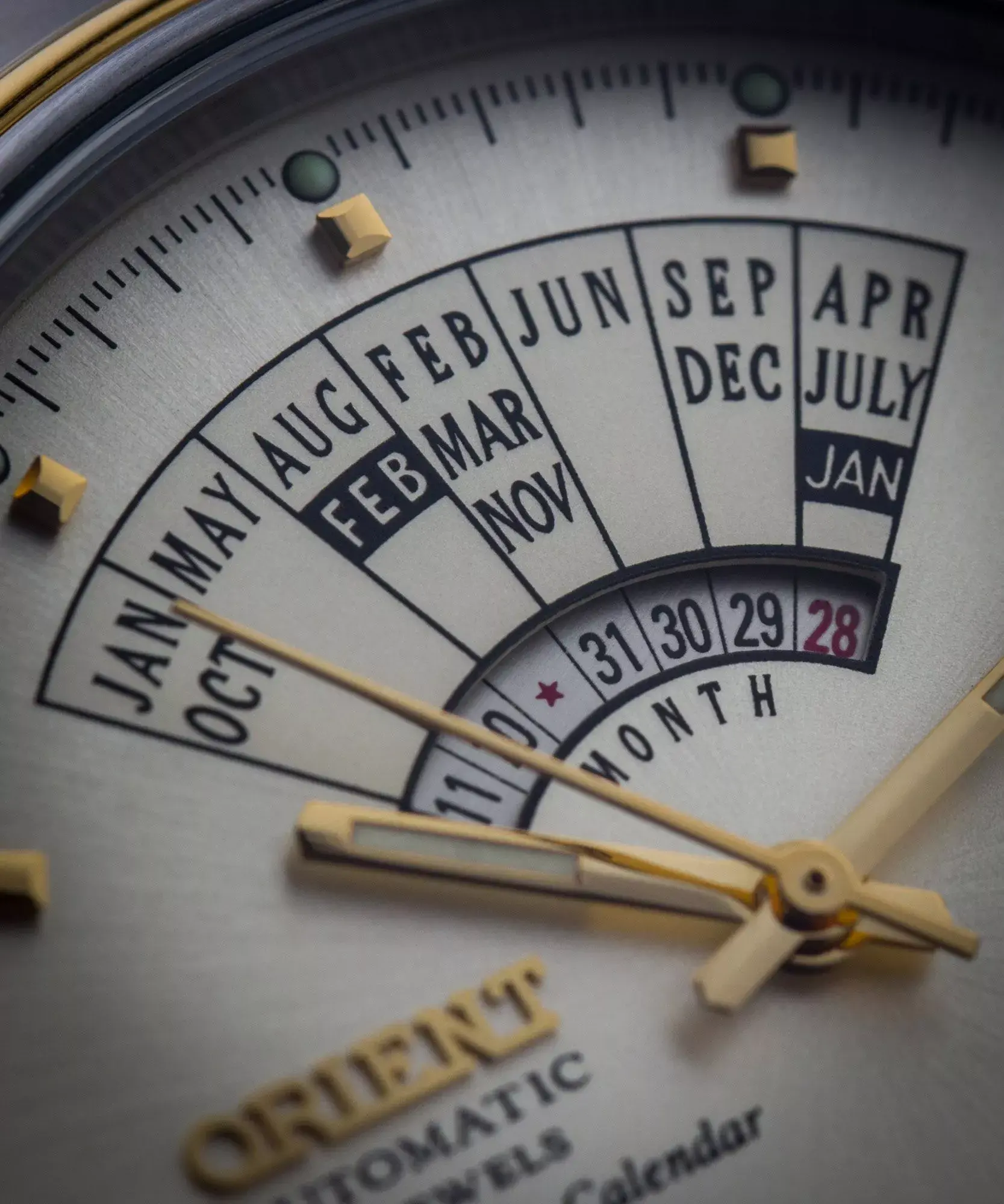 Orient Multi-Year Calendar FEU00000CW — одни из лучших часов, предлагаемых этим брендом. Эти мужские часы являются воплощением элегантности и изысканного стиля, поэтому они наверняка удовлетворят потребности каждого мужчины. Внутри часов находится автоматический механизм, работающий от солнечного света. Часы оснащены прочным корпусом из нержавеющей стали. Серебряный и золотой браслет из стали прост в использовании и идеально сочетается с другими элементами часов. Бежевый циферблат защищен от повреждений, так как часы оснащены надежным минеральным стеклом, устойчивым к ударам и царапинам. Водонепроницаемость часов до 50 м защищена от повреждений, вызванных водой.