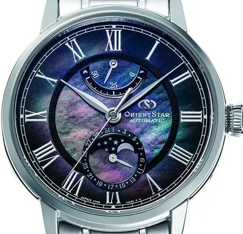 Последняя версия Orient Star Moon Phase сохраняет оригинальный дизайн 2017 года, когда бренд выпустил свои первые механические часы с функцией определения фазы луны в рамках классической коллекции, которая быстро стала флагманом бренда. Этот новый, тщательно созданный дизайн снова черпает вдохновение из природы: отражение луны на озере Тадзава в префектуре Акита послужило шаблоном перламутрового циферблата. Часы могут похвастаться превосходным качеством и тщательной работой, которые являются синонимом ORIENT STAR . Его отличительный внешний вид делает его отличным выбором для элегантных мужских часов.