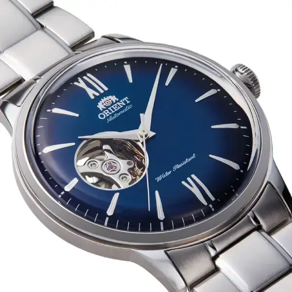 Мужские часы-скелетоны классического минималистического дизайна ORIENT RA-AG0028L10B представлены в круглом стальном корпусе и браслете серебристой цветовой гаммы. Задняя крышка прозрачная-из минерального стекла. Они укомплектованы автоматическим механизмом с автоподзаводом F6T22, с 22 камнями. Синий скелетизированный циферблат с прозрачным небольшим окном находится под надежным прикрытием из минерального прочного стекла с закаленным эффектом. Ширина корпуса 41мм. Водостойкость 30м. Замок браслета прочный и надежный, двухкнопочный. Тип индикации-серебристые индексы, римские цифры и стрелки.