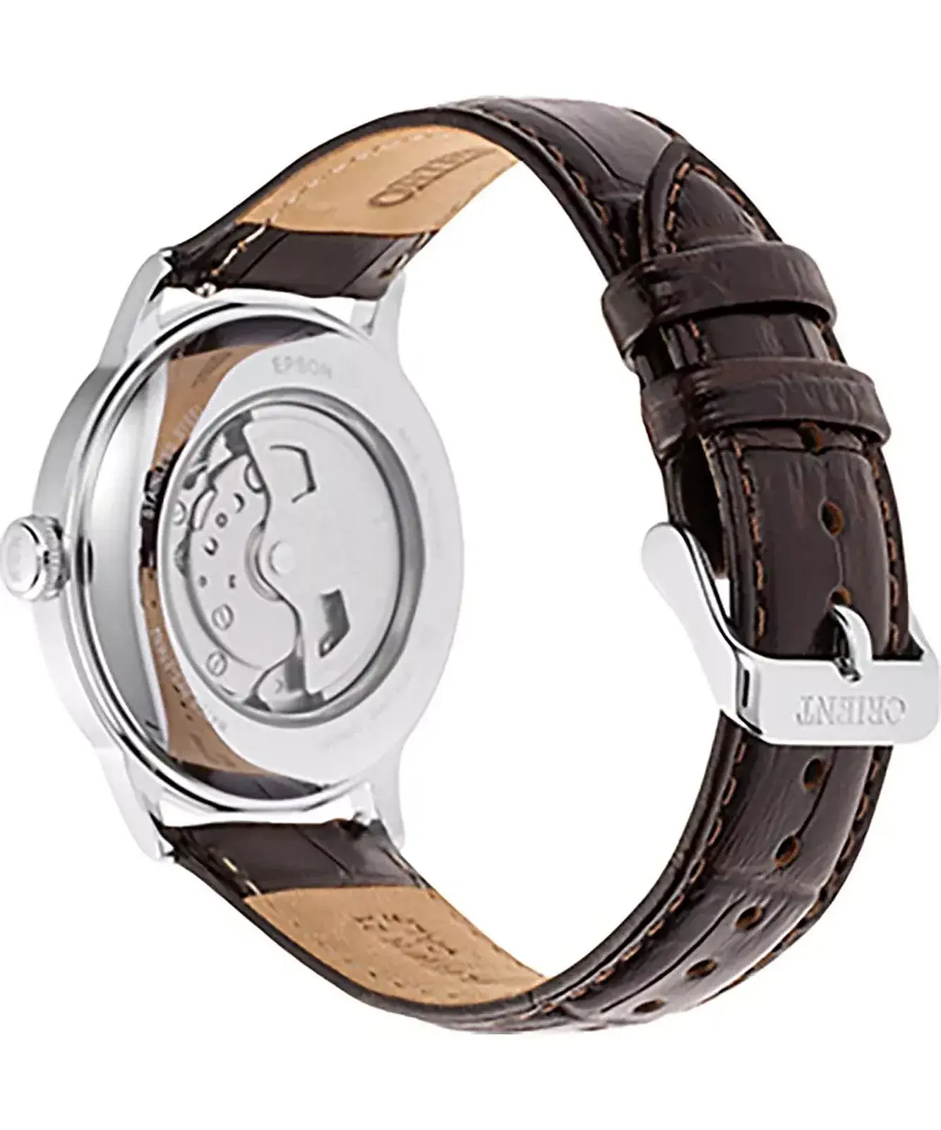 Мужские часы Orient Bambino Classic Automatic RA-AC0026R30B — уникальная модель, сочетающая элегантность и функциональность. Они оснащены автоматическим механизмом Orient F6724 с запасом хода 40 часов. Серебристый корпус из нержавеющей стали шириной 40 мм придаёт часам солидный вид. Красный циферблат привлекает внимание и покрыт минеральным стеклом, защищающим от повреждений. Часы водонепроницаемы до 30 метров, что защищает их от мелких брызг. Коричневый кожаный ремешок добавляет им индивидуальности и обеспечивает комфорт при ношении