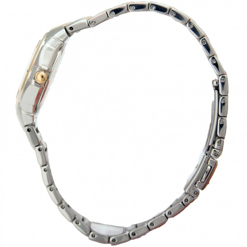 Корпус и браслет из нержавеющей стали. Серебряный циферблат с золотыми тонами и указателями. Минутные маркеры вокруг внешнего обода. Тип: аналоговый. Отображение даты в положении «3 часа». Кварцевый солнечный механизм. Сапфировое стекло. Размер корпуса: 29 мм. Круглый корпус. Водонепроницаемость 100 метров. Функции: дата, час, минута, секунда.