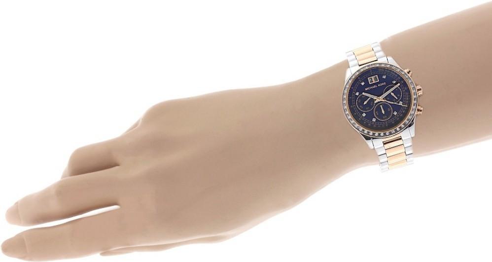 Кварцевый механизм. Хронограф. Апертура даты в позиции 12-ти часов. Суточное время. Стрелки с люминесцентным покрытием. Минеральное стекло. Циферблат и корпус украшены кристаллами. Часы выполнены из нержавеющей стали с частичным PVD покрытием цвета золота. Раскладывающаяся застежка. Диаметр корпуса 40 мм, толщина 10 мм.