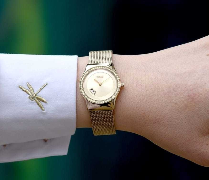 Английские женские часы STORM 47385/gd. Элегантные современные часы для женщин CYRO CRYSTAL SILVER. Круглый корпус из нержавеющей стали. Плетеный миланский браслет. Прочное минеральное стекло. Точный кварцевый механизм с окошком даты. Вставка - кристалллы Swarovski.