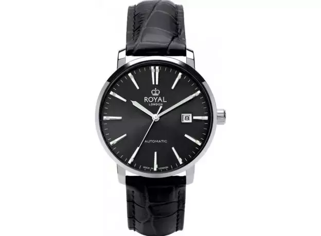 Присмотритесь к аксессуарам именитого бренда. Модель ROYAL LONDON 41405-01 выглядит изысканно-строго. Она предстаёт перед вашим взором в серебристо-черном цвете. В корпус встроен механизм с автоподзаводом. Корпус с тонким полированным безелем и широкими ушками изготовлен из стали. Черного цвета циферблат, напоминающий по фактуре атлас, находится под герметичной защитой каленого минерального стекла. Ширина корпуса 40мм. Водостойкость 50м. Ремешок из кожи с тиснением выполнен в черном цвете. Застежка-пряжка. Тип индикации-изящные клинообразные индексы, люминесцентные стрелки и окошко даты.
