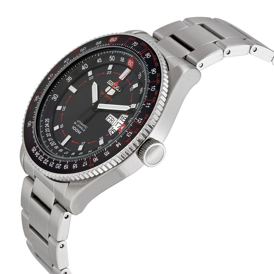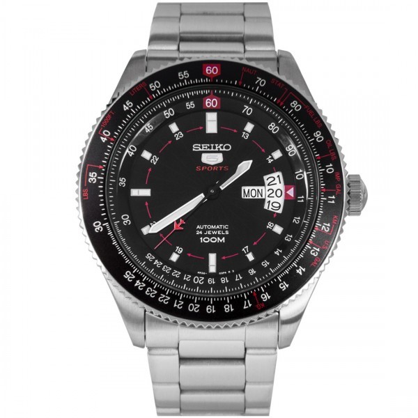 Seiko 5 Flightmaster. Черный циферблат из нержавеющей стали - SRP613 SRP613K SRP613K1Корпус из нержавеющей стали с браслетом из нержавеющей стали. Черный циферблат со светящимися стрелками и метками. 24-часовой маркер. Тип: аналоговый. Люминесцентные стрелки и маркеры. День недели и дата отображаются в положении «3 часа». Автоматический механизм. Устойчивый к царапинам кристалл Hardlex. Прозрачная задняя крышка. Диаметр корпуса: 44 мм. Круглый корпус. Ширина браслета: 22 мм. Водонепроницаемость 100 метров / 330 футов. Функции: дата, день, час, минута, секунда.
