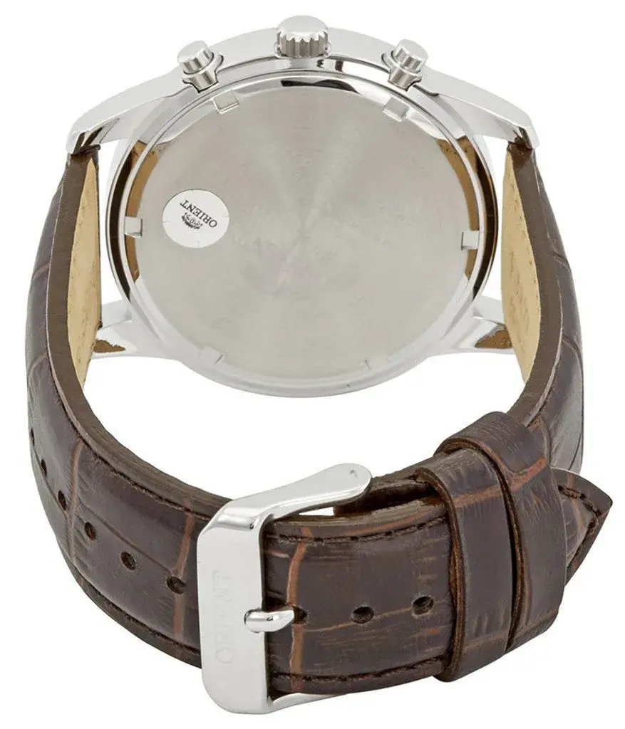 Orient FKU00005T имеет дисплей даты в положении 3 часа, 24-часовой дисплей времени и функцию секундомера , работа которой отображается на четких дополнительных циферблатах - счетчике минут и секунд. Секундомером можно управлять с помощью боковых кнопок - верхний секундомер запускает и останавливает, нижний секундомер сбрасывает измеренные значения - их можно прочитать на дополнительных циферблатах в положениях 6 (секунды) и 9 (минуты). Дополнительный циферблат в положении 12 часов предлагает 24-часовой дисплей времени . Часы можно использовать для измерения интервалов до 30 минут.