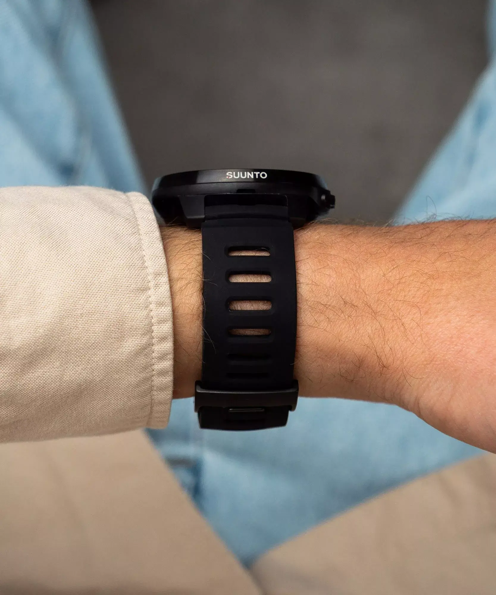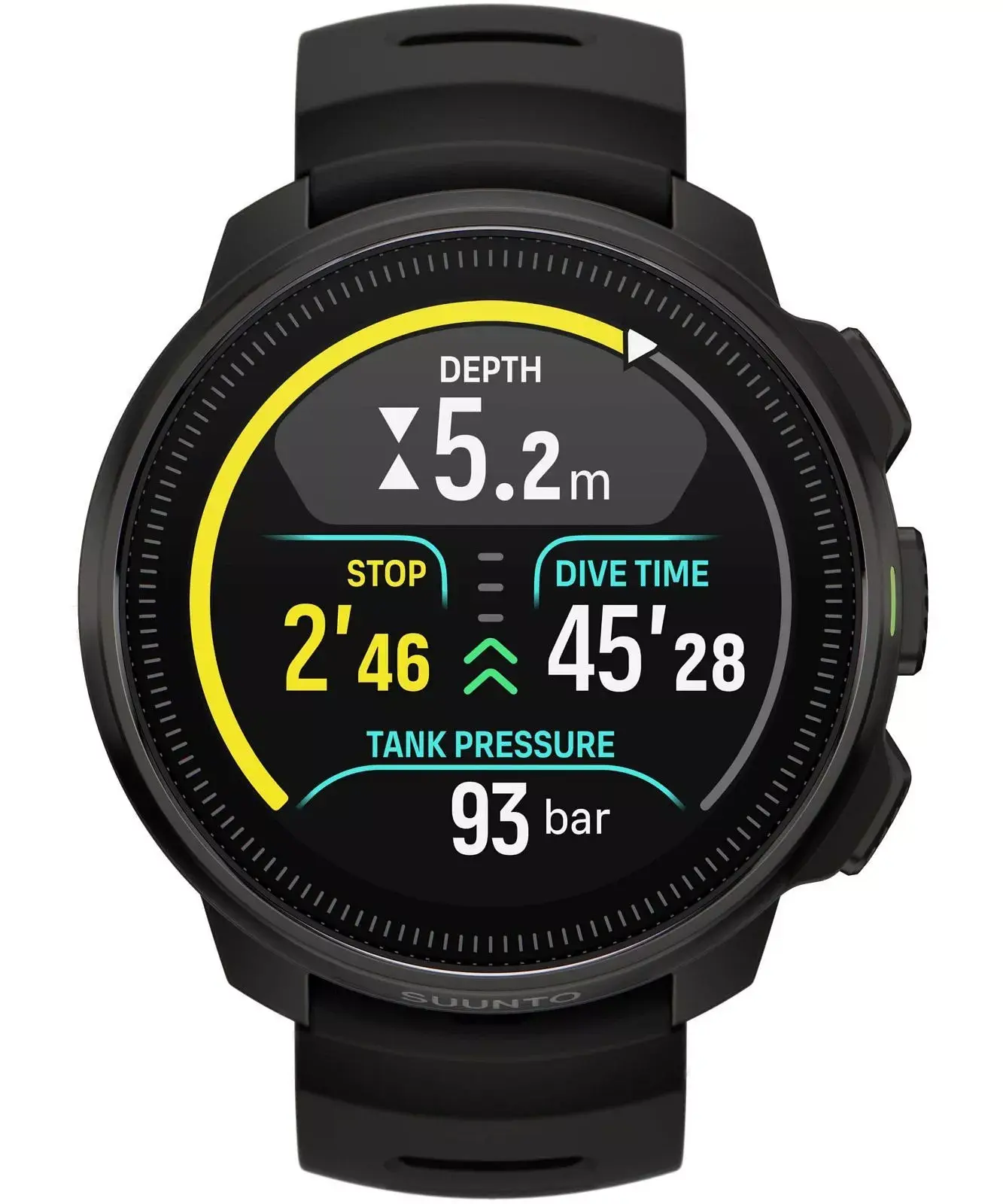 Синхронизация со смартфоном iOS и Android через Bluetooth с мобильным приложением Suunto. Приложение Suunto позволяет получать на часах уведомления с телефона. Отслеживание активности: ЧСС, цели активности - шаги, калории. Отслеживание среднего пульса во сне, время сна и бодрствования, качество сна. Совместимость с поясами-кардиодатчиками Bluetooth Smart. Предупреждение о шторме. Перезаряжаемый аккумулятор. Индикатор заряда аккумулятора. Время работы аккумулятора: в режиме SmartWatch - 16 дней, в режиме ожидания - до 26 дней, в режиме погружения от 40 до 60ч. Рабочая температура от -20 °C до +55 °C. Глубиномер до 60м. Режим погружения: сигнализация о времени погружения, уведомление о глубине погружения, беспроводная поддержка давления газа, потребление газа в реальном времени, давление в баке, уведомление о слишком быстром всплытии и др. Часы оснащены собственной операционной системой Suunto. Вибро-оповещение. Блокировка циферблата и кнопок во время тренировок. Встроенная память – 32Гб. Ремешок с классической застежкой и системой быстрой замены.