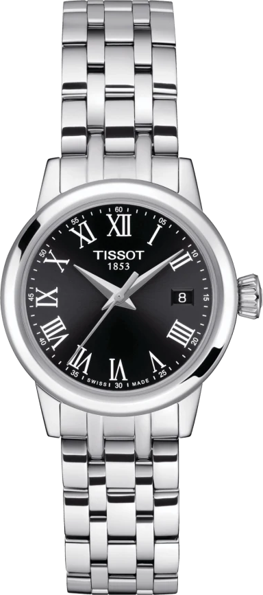 Женская классическая кварцевая модель, индикация времени центральными стрелками, окошко даты в положении 3 часов. Точность хода швейцарского кварцевого механизма ETA F04.115 составляет +/- 20 секунд в месяц. Сапфировое стекло устойчиво к появлению царапин. Корпус и браслет изготовлены из нержавеющей стали 316L. Часы сохраняют водостойкость при давлении 5 бар. Застёжка «бабочка» с кнопками никогда не расстегнётся случайным образом. Функции: календарь, EOL.