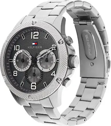 Элегантные мужские часы Tommy Hilfiger из коллекции Blaze стильного классического дизайна. Он изготовлен из нержавеющей стали и минерального хрусталя для стекла. Дисплей черный многофункциональный с индикаторами дня недели и месяца и 24-часового формата. Модель оснащена кварцевым механизмом. Диаметр 46 мм. Водонепроницаемость: 5 АТМ – допускается ручная стирка, сильное намокание не рекомендуется.