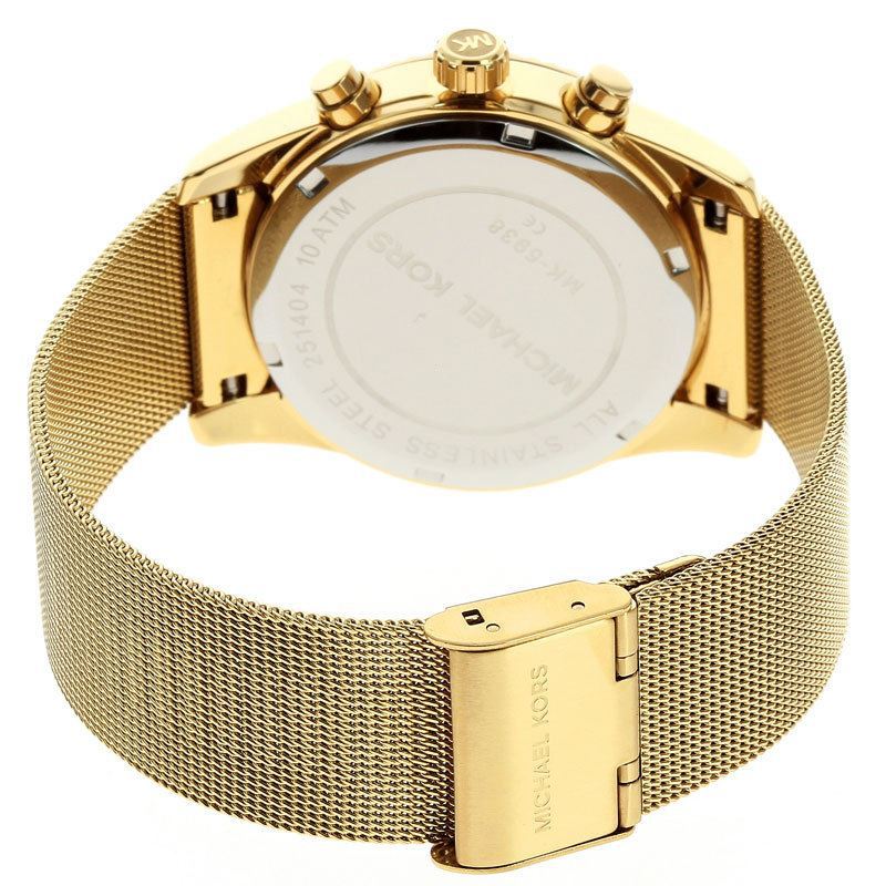 Michael Kors Lexington MK5938 - женские кварцевые часы. Корпус этих часов среднего размера (38 мм мм.) и выполнен из нержавеющей стали. Модель Lexington MK5938 имеет минеральное стекло, стальной браслет золотого цвета, золотой циферблат. Водоустойчивость: 100 метров. Дополнительные функции и особенности: дата, хронограф. Полная заводская комплектация Michael Kors, гарантия 2 года.