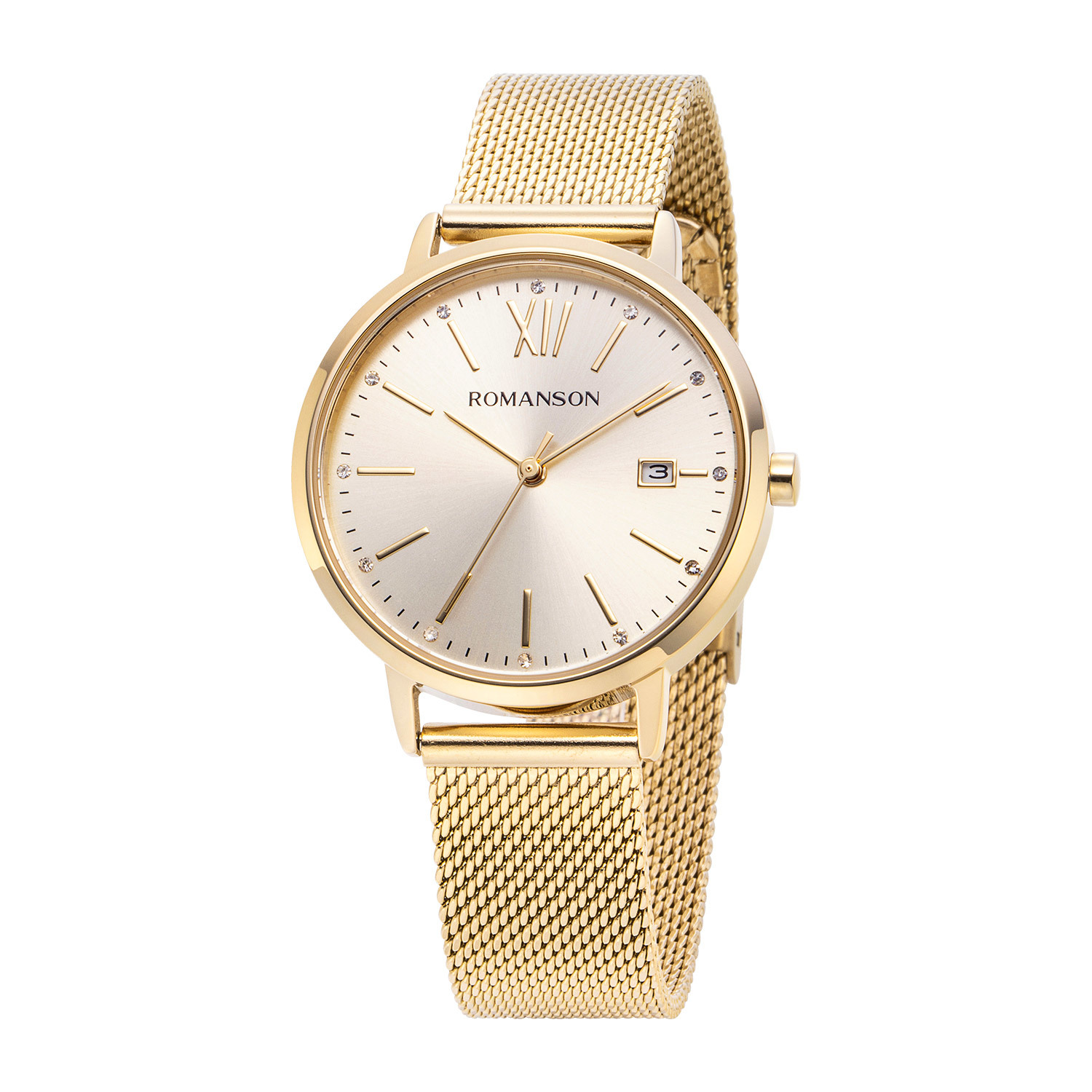 Японский кварцевый механизм. Центральные часовая, минутная и секундная стрелки. Корпус из нержавеющей стали со стойким PVD покрытием. Сетчатый миланский браслет, который обладает подвижностью, позволяет коже руки дышать даже в самую жаркую погоду. Основные достоинства плетеных браслетов – отсутствие острых краев, гибкость и прочность. Мелкие звенья металла гладкие и не доставляют неприятных ощущений.  Надежный браслетный замок с тройным сгибом. Инкрустация искусственными кристаллами.
