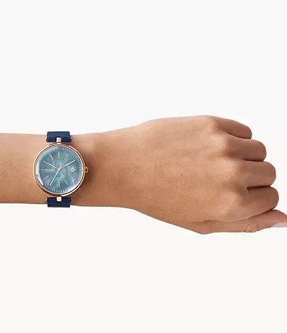 Поклонники синего цвета наверняка будут в восторге от цвета циферблата, который гармонирует с остальными элементами часов. Skagen SKW2981 отображает время аналоговым способом, т. е. в наиболее классической, стрелочной форме. Использование перламутра для заполнения циферблата делает модель Skagen SKW2981 каждый раз новой. Все это благодаря нежным частицам, которые отражают лучи света и позволяют добиться нежного, изысканного блеска.