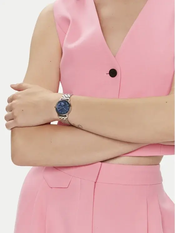 Эти изящные современные часы элегантно обвивают женское запястье, становясь незаменимым аксессуаром для любого образа. Женские кварцевые часы Kuppel Lille. Круглый стальной корпус. Циферблат с метками в виде арабских цифр и штрихов защищен минеральным стеклом. Стрелки с люминесцентным покрытием, которое светится в темноте после непродолжительной зарядки на свету. Секундная стрелка вынесена на отдельный циферблат. Гладкая заводная головка. Стальной браслет с раскладывающейся застежкой.